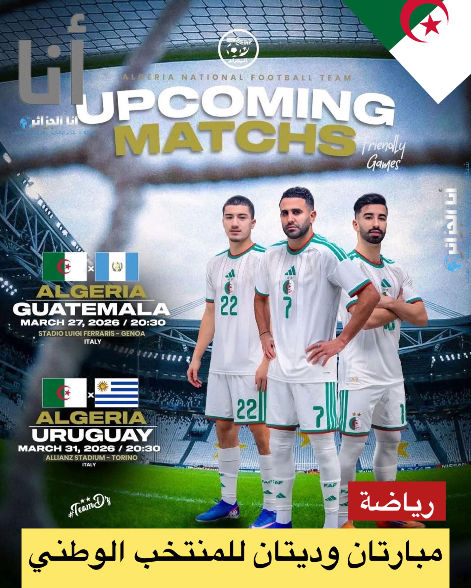 الخضر يواجهون غواتيمالا والأوروغواي شهر مارس