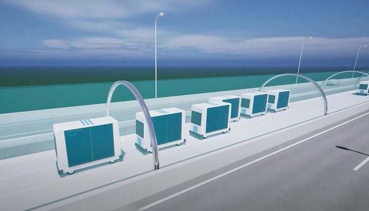 في الشهر الماضي، نشرت الحكومة اليابانية مقطع فيديو مصمم رقمياً، يُظهر تصوراً للمشروع، حيث تجري حاويات كبيرة على ألواح أو منصات نقل يمكن لكل منها استيعاب ما يصل إلى طن من الحمولة، وتتحرك ضمن طريق ثلاثي المسارات، وتلقائي التدفق، وسط طريق سريع عام تتخلله سيارات ودراجات الناس في الاتجاهين.