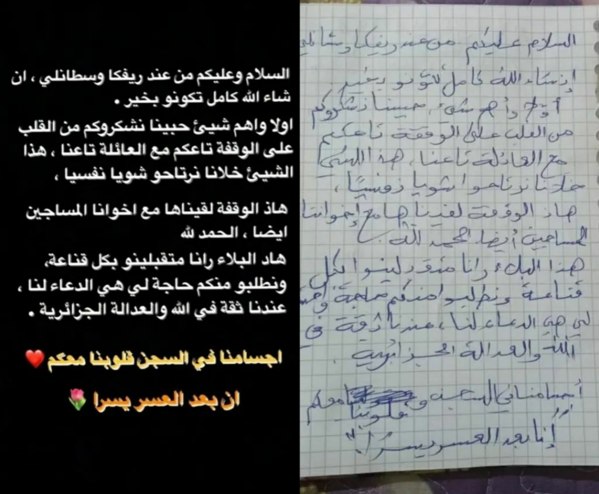 بعث كلا من محمد أبركان المعروف باسم “ستانلي” ورفيق بوجملين المعروف باسم “ريفكا” رسالة للمتابعين بخط اليد من داخل سجن الحراش.