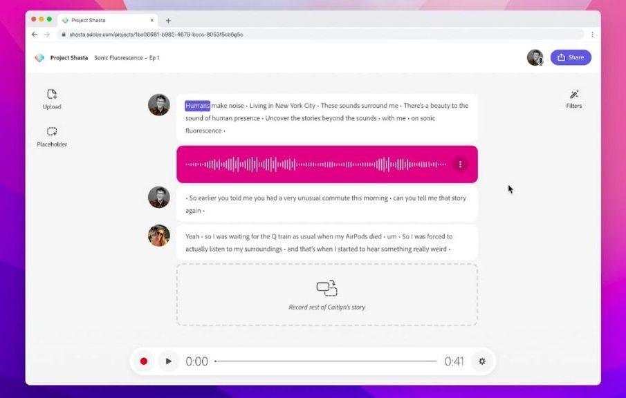 أدوبي تكشف عن مشروع Project Shasta – محرر صوت عبر الويب