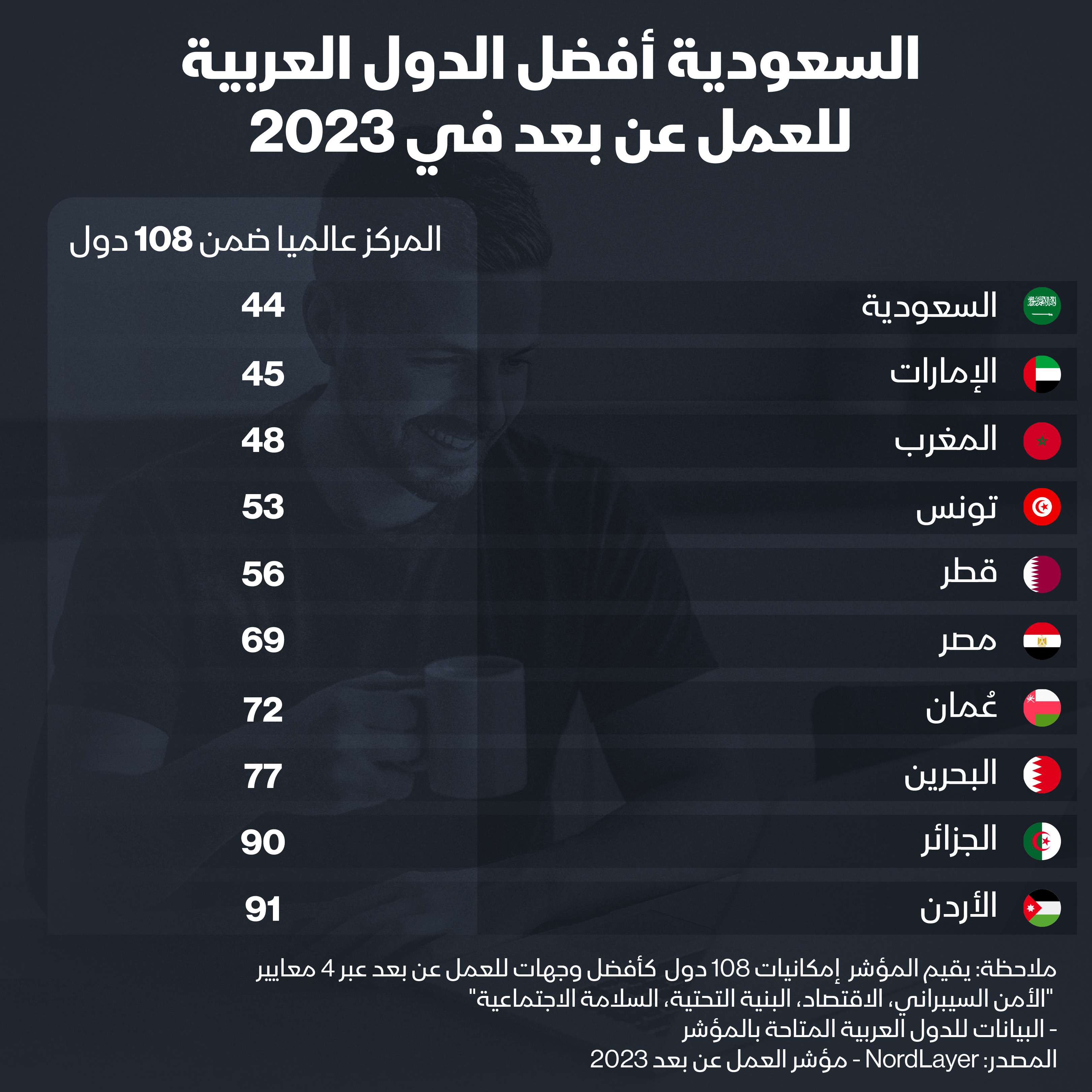إنفوغرافيك: السعودية الأفضل عربياً في العمل عن بعد وهذا مركز الجزائر