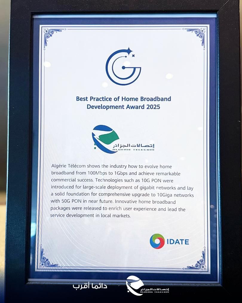 يأتي هذا التكريم ليُضاف إلى سلسلة من النجاحات الدولية التي حققتها المؤسسة، تثمينا لخبرتها ورؤيتها في مجال التحول الرقمي وتوفير الأنترنت فائق السرعة للأسر الجزائرية.