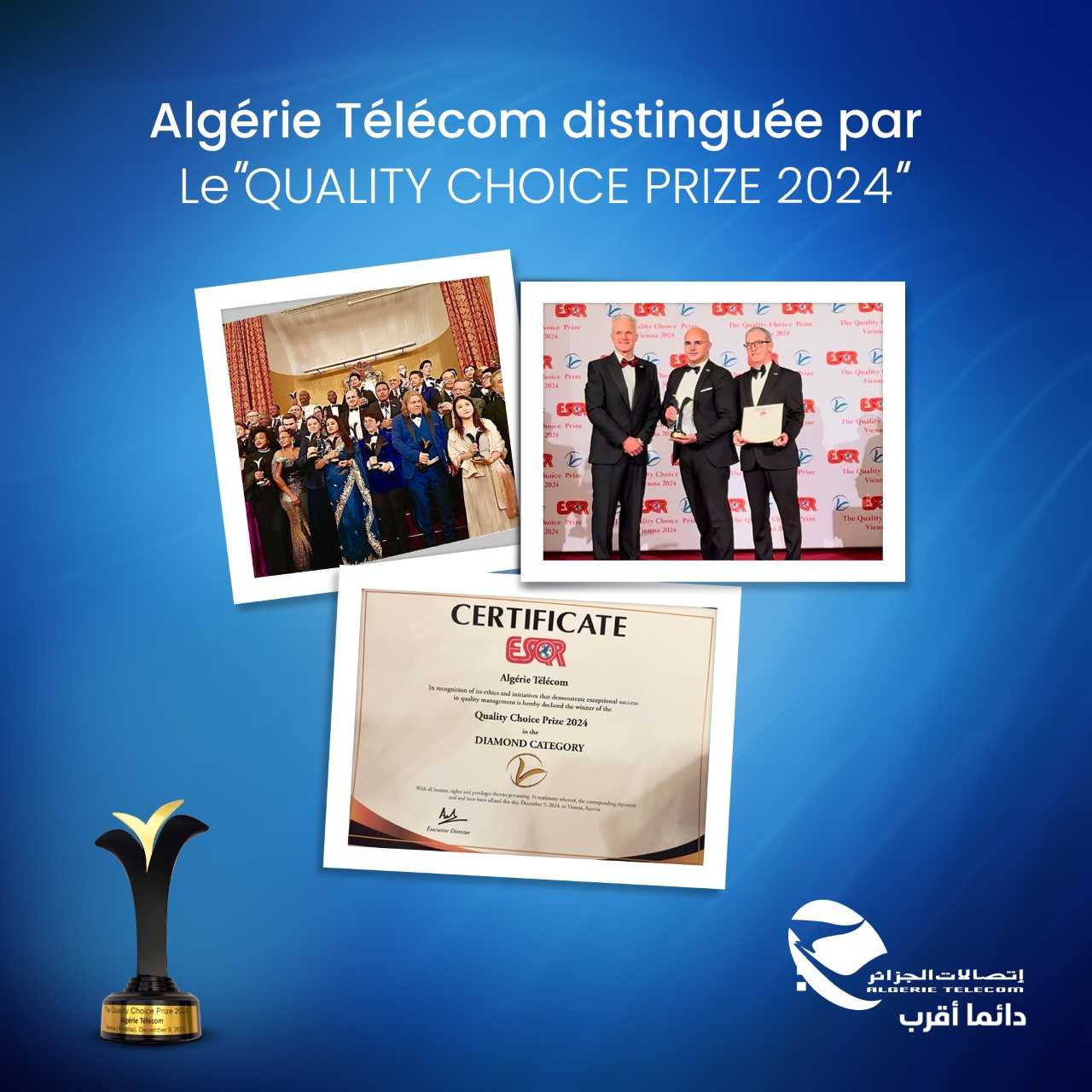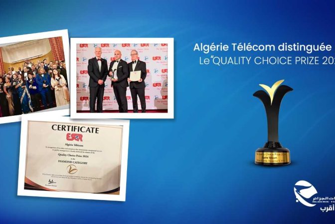 تحصلت اتصالات الجزائر على جائزة “اختيار الجودة 2024 – فئة ألماس” تقدير دولي للابتكار وجودة الخدمات.