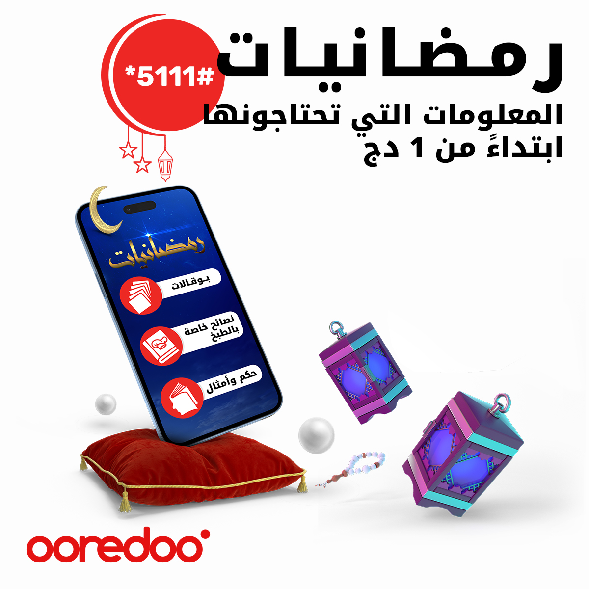 من خلال هذه الخدمة سهلة الاستخدام والتي يمكن الولوج إليها في أي وقت، ترافق Ooredoo زبائنها طوال شهر رمضان المبارك بحلول وخدمات تستجيب لمتطلباتهم.