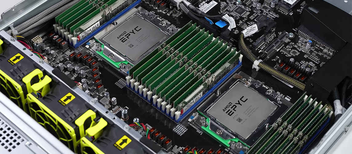 كما هو الحال في الحواسيب، عادة ما تكون المعالجات هي الجزء الأهم في رفوف الخوادم المكدسة في مراكز البيانات. فهي المكون الأهم من حيث تنفيذ المهام وإدارة المكونات الأخرى دون شك، وعادة ما تكون المستهلك الأكبر للطاقة، وبالأخص في مراكز البيانات. لذا عادة ما تكون المعالجات الأكثر كفاءة هي الخيار الأفضل لتخفيض فواتير الطاقة الكبيرة الخاصة بمراكز البيانات، وهنا برزت معالجات EPYC من AMD بشكل خاص بفضل وفورات الطاقة الكبيرة التي تقدمها في مختلف الاستخدامات.
