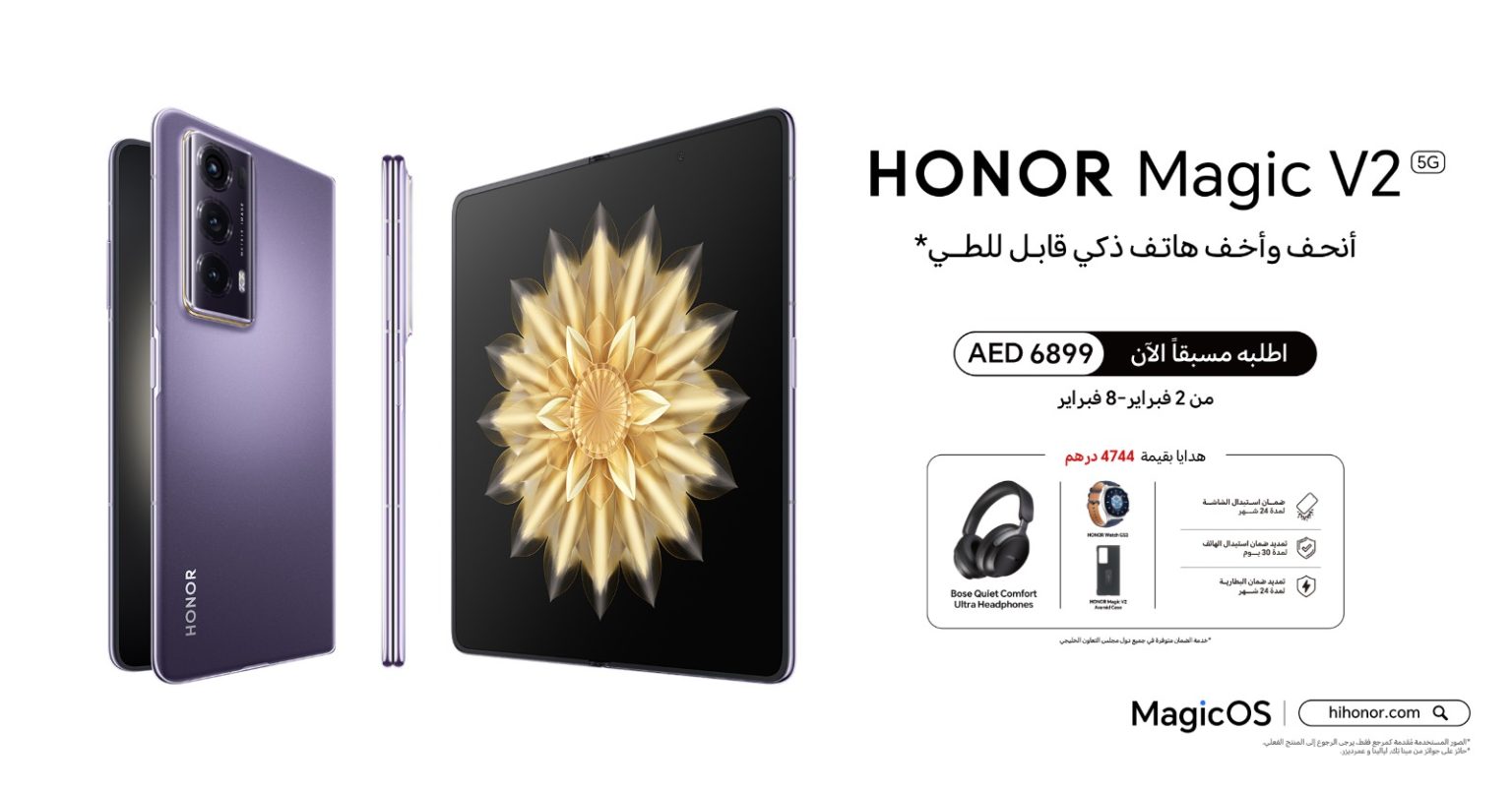 الإعلان عن إطلاق هاتف HONOR Magic V2 الرائد القابل للطي في الإمارات العربية المتحدة