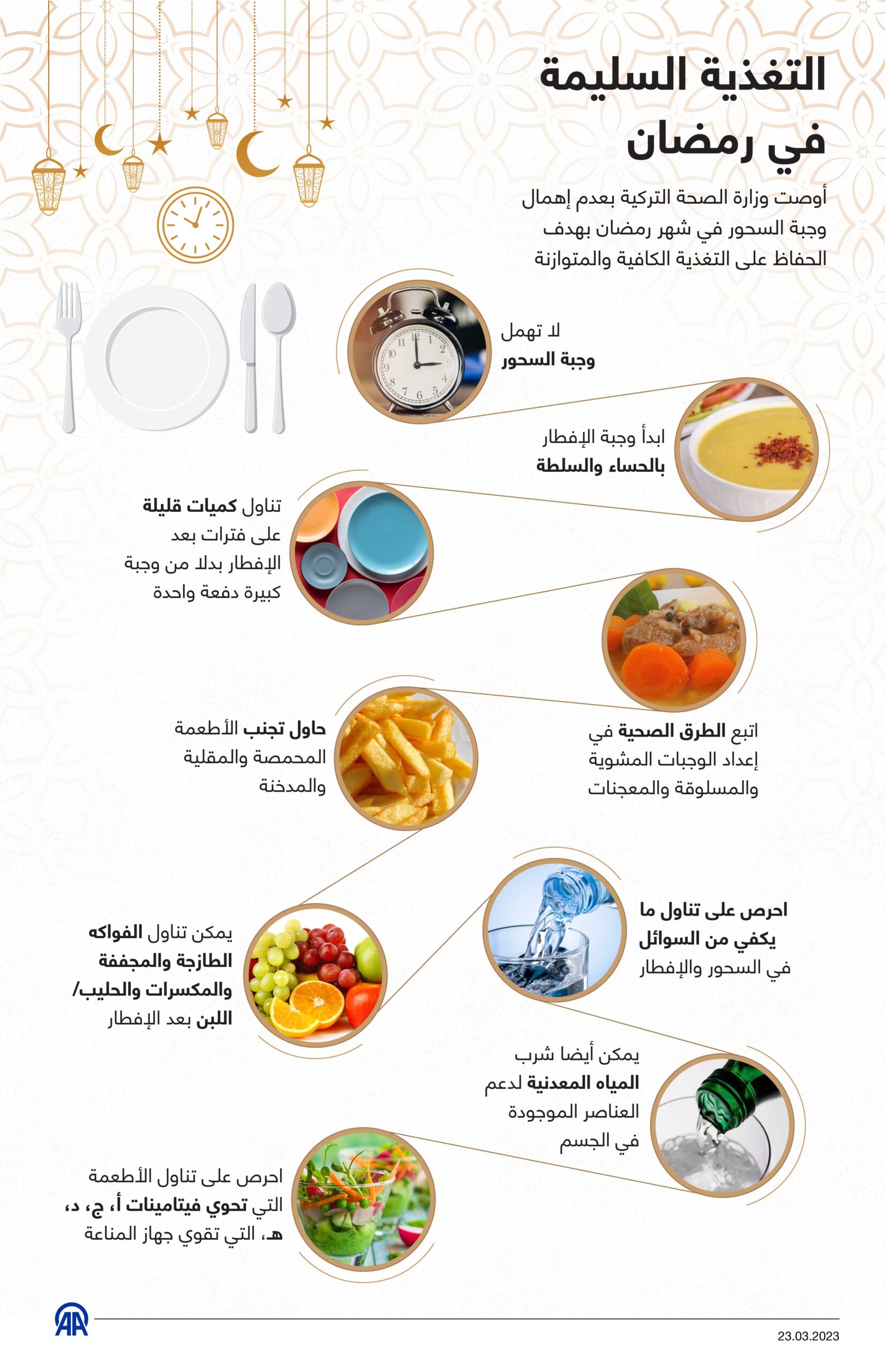 أوصت وزارة الصحة التركية بعدم إهمال وجبة السحور في شهر رمضان بهدف الحفاظ على التغذية الكافية والمتوازنة.