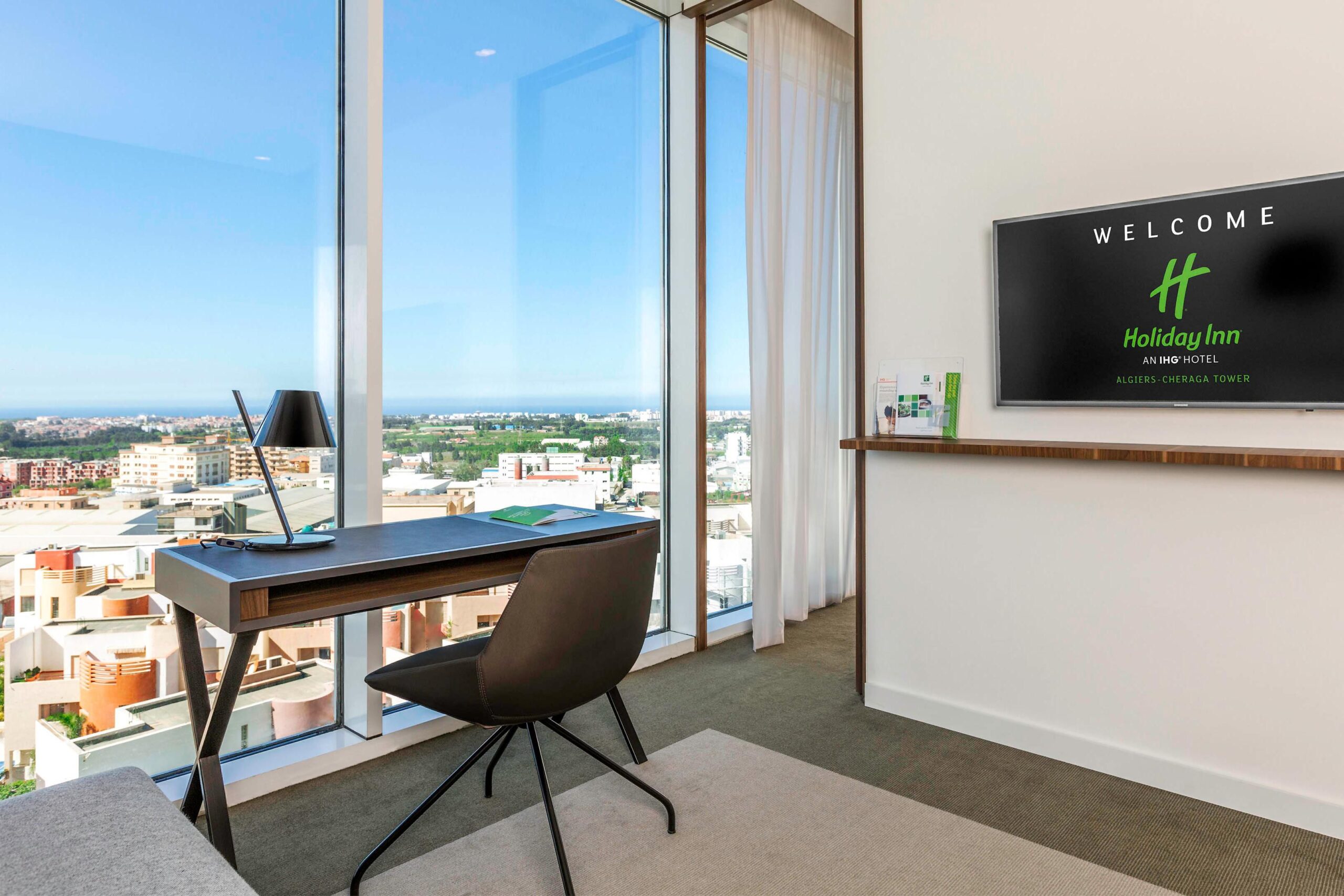 يقع فندق هوليداي إن الجزائر برج الشراقة على بعد 30 دقيقة من مطار هواري بومدين، وعلى بعد 10 دقائق من البحر الأبيض المتوسط وعلى بعد20 دقيقة من قلب العاصمة و حيدرة، ويمكن الوصول إليه بسهولة من الطريق السريع. فندق هوليداي إن الجزائر برج الشراقة هو فندق ناطحة سحاب ويقدم تجربة عالية لحواسك الخمسة. ويكرس فريقنا كل الجهود لتجاوز التوقعات لأي حدث خاص أو اجتماعي أو مهني في واحدة من قاعاتنا الخمس. يمكنك تناول وجبة خفيفة ، أو أمضا ء لحظة ممتعة في مطعم إيكوسيوم الذي يقدم الطعام طوال اليوم أو تجربة طهي لا تنسى في مطعم ” 101 ” الذي يقع في الطابق خمسة و عشرون نحن تجسد التميز في الخدمة والترحيب الحار الجزائري الأسطوري في هوليداي إن الجزائر برج الشراقة ونحن نتطلع إلى الترحيب بكم.