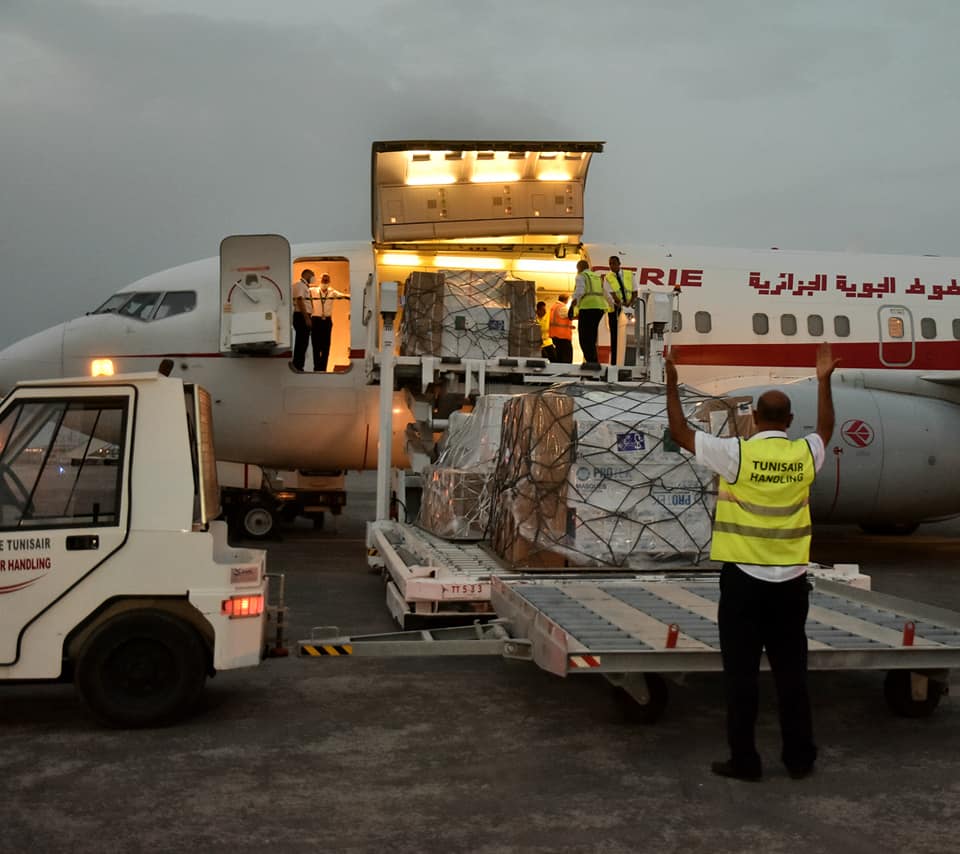 حلت، مساء اليوم الأربعاء بمطار تونس قرطاج الدولي، طائرة جزائرية على متنها 200 ألف جرعة من اللقاح المضاد لفيروس كورونا كوفيد-19 و80 مكثف أوكسجين ومستلزمات صحية منحتها الجمهورية الجزائرية الديمقراطية الشعبية الشقيقة إلى تونس.