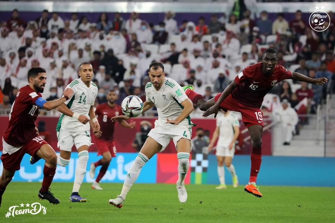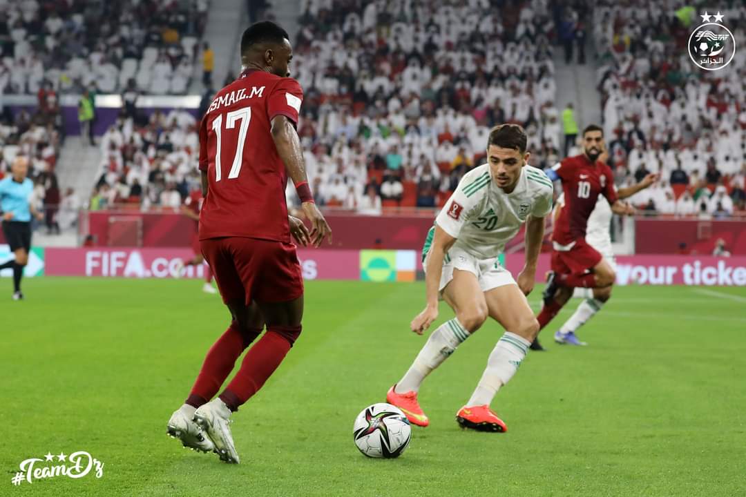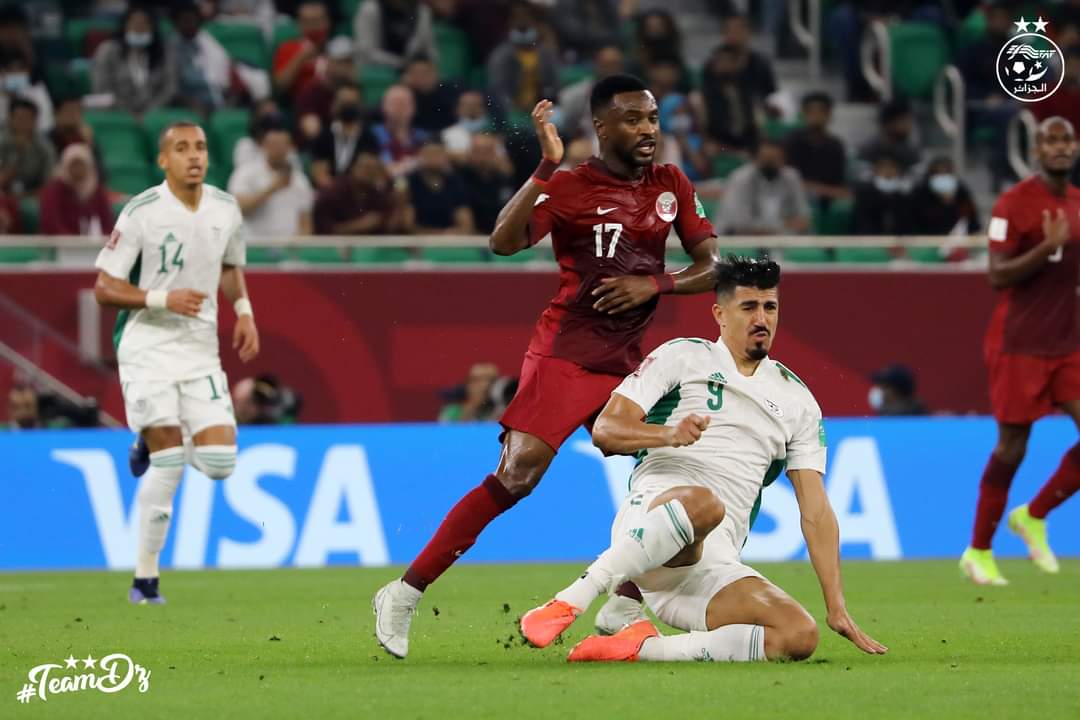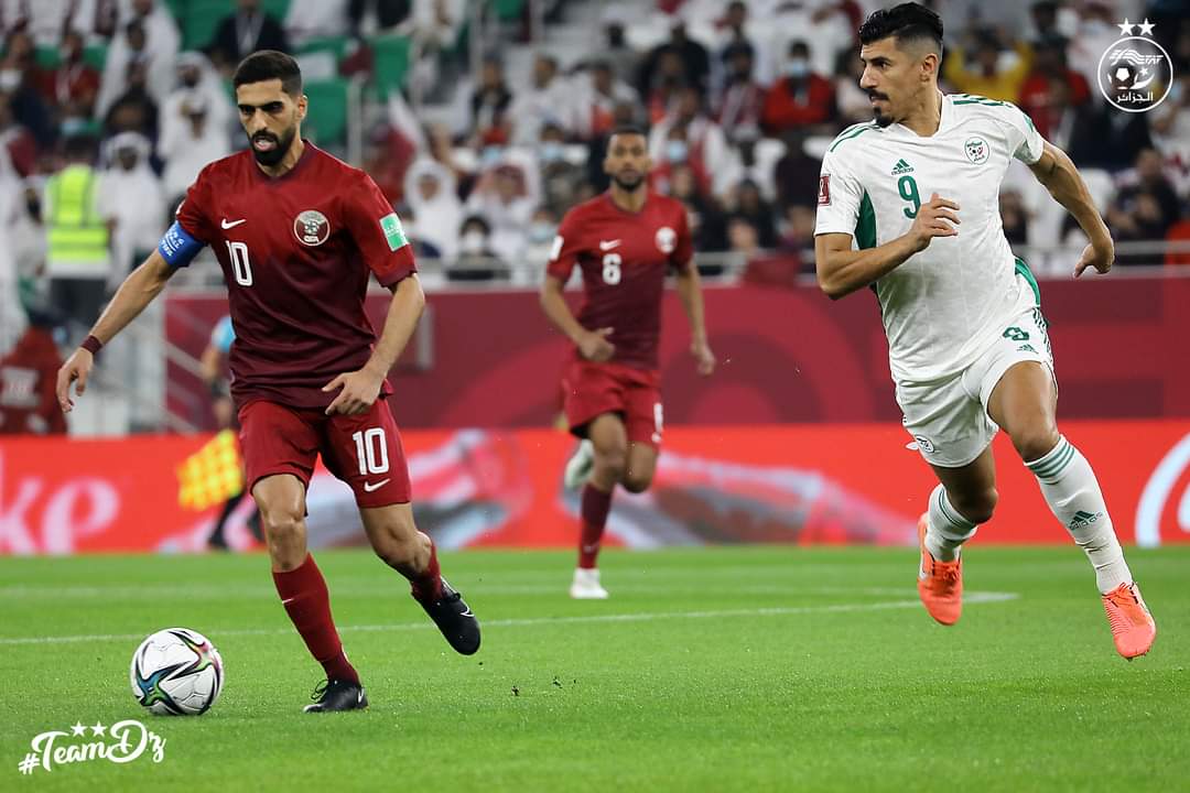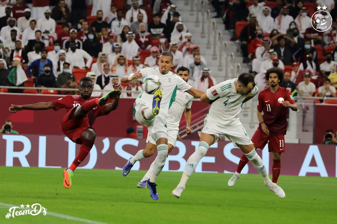 تخوفات الجزائريين كانت في محلها بعد أن أحكم لاعبو “العنابي” سيطرتهم على منطقة جزاء زملاء براهيمي الذين تراجعوا كثيرا بسبب العامل البدني، ليتمكن بعدها المنتخب القطري من تعديل النتيجة عن طريق رأسية محكمة في الدقيقة 90+7 وسط احتجاجات لاعبي “الخضر” بحجة وجود خطأ على بلعمري.