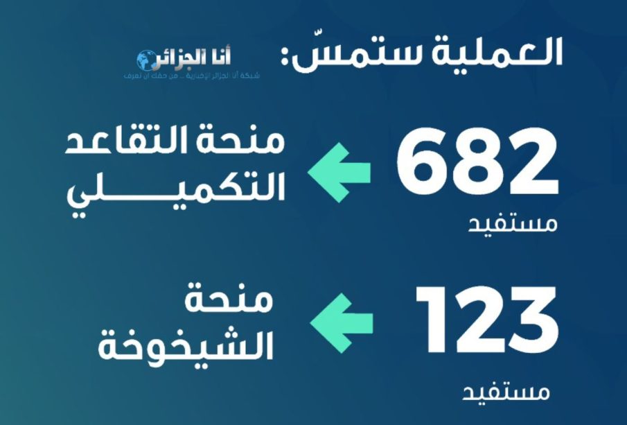 العملية شملت 705 مستفيد من مجموع الأشخاص المستفيدين، حيث تضمنت 682 مستفيدا من منحة التقاعد التكميلي، فيما بلغ عدد المستفيدين من منحة الشيخوخة 123 مستفيدا.
