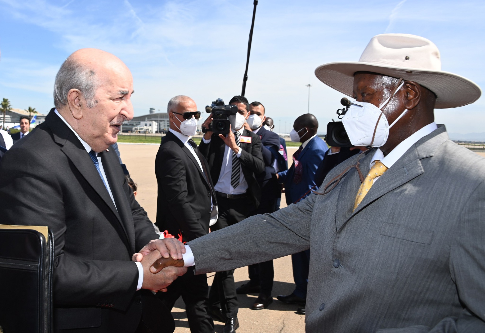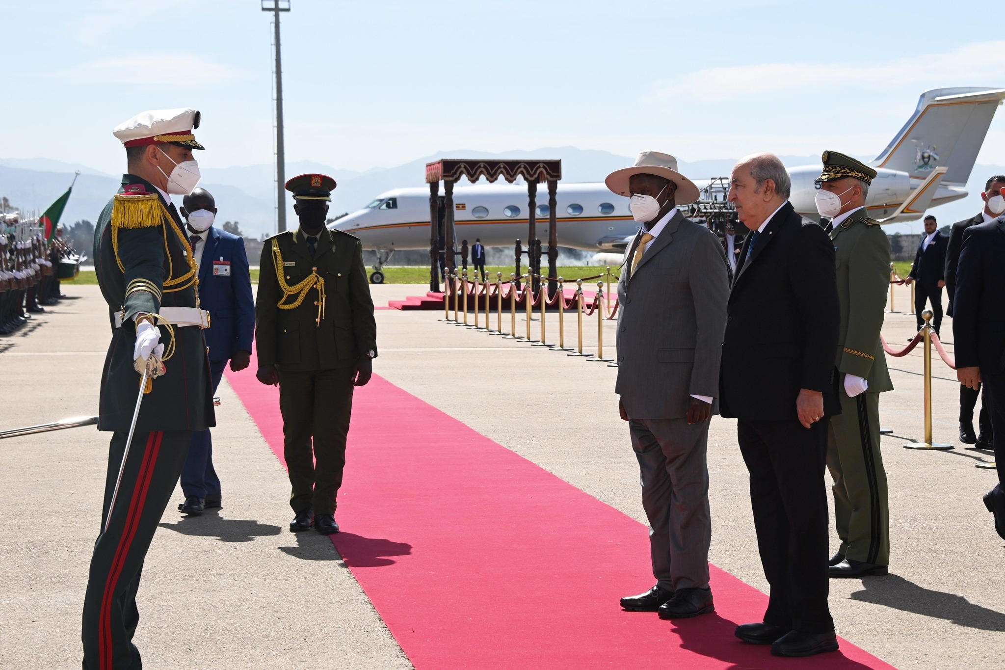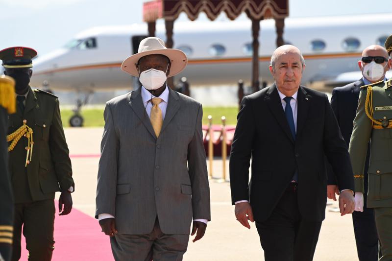 إستقبل رئيس الجمهورية عبد المجيد تبون، نظيره الأوغندي يوري كاغوتا موسيفيني، بمطار الجزائر الدولي.