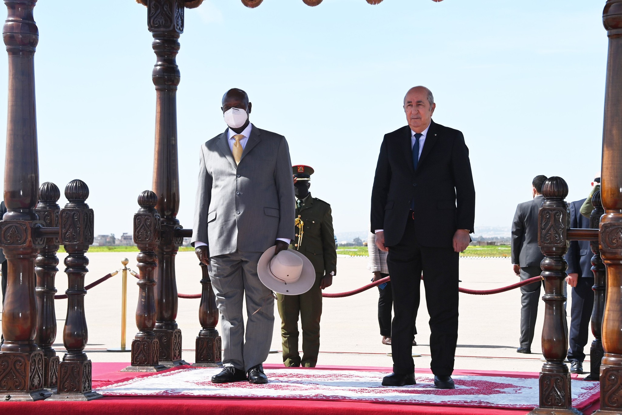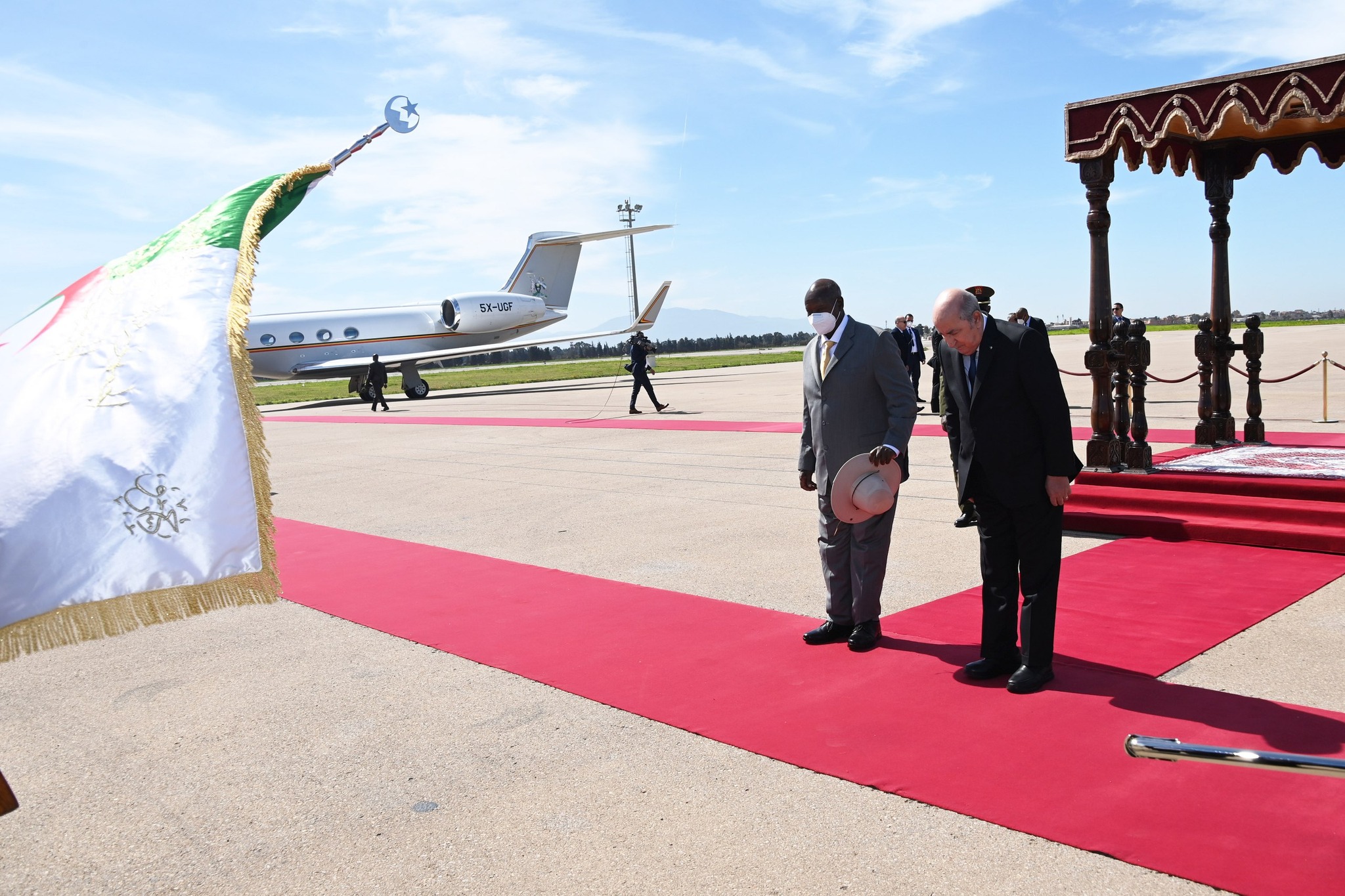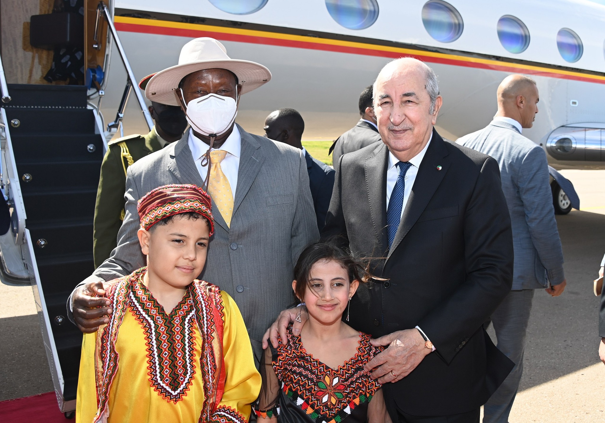 إستقبل رئيس الجمهورية عبد المجيد تبون، نظيره الأوغندي يوري كاغوتا موسيفيني، بمطار الجزائر الدولي.