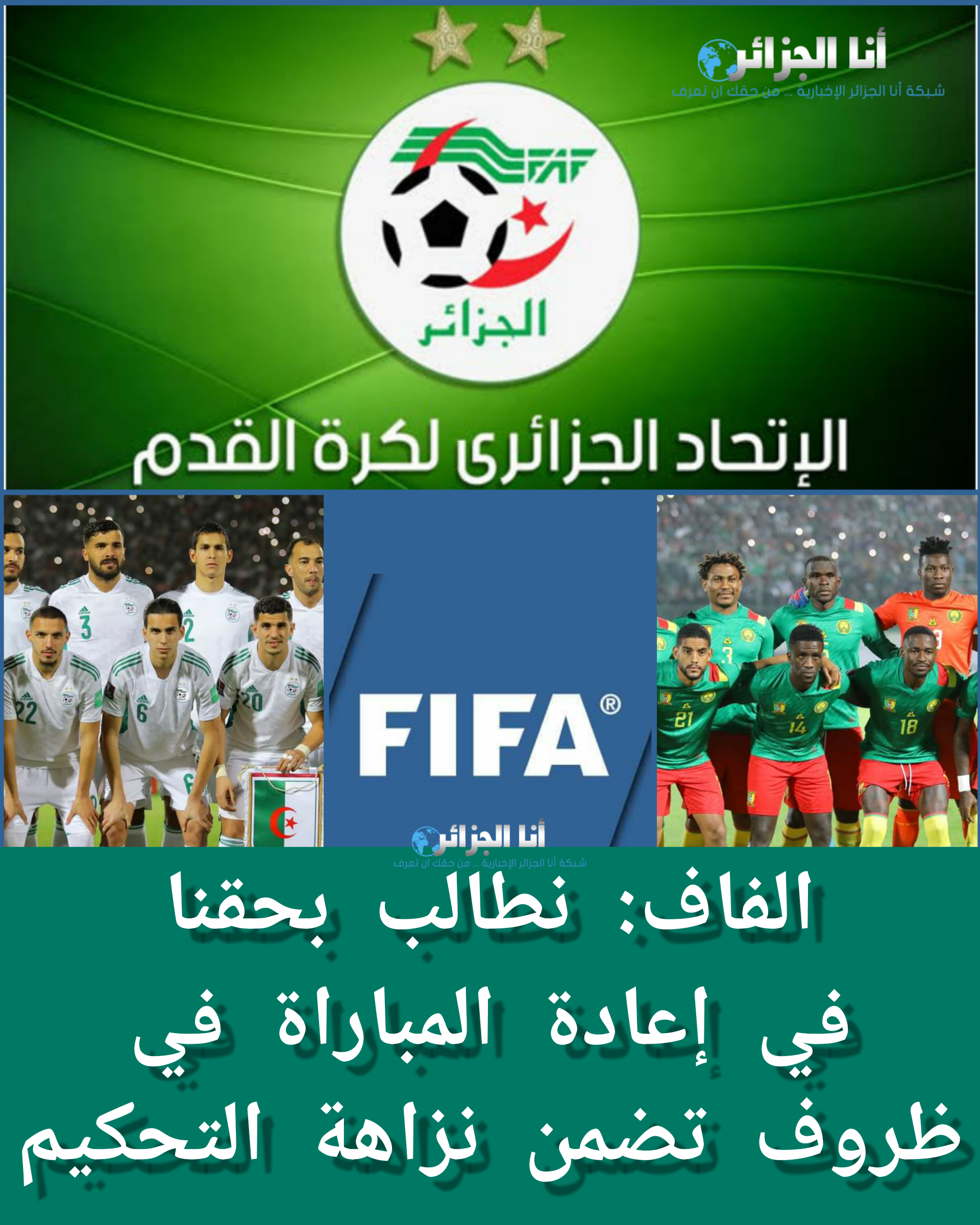 الفاف تطلب من لجان الفيفا فتح تحقيق في خلفيات التحكيم خلال مباراة الجزائر _ الكاميرون وتطالب باعادة المباراة🇩🇿🇸🇳