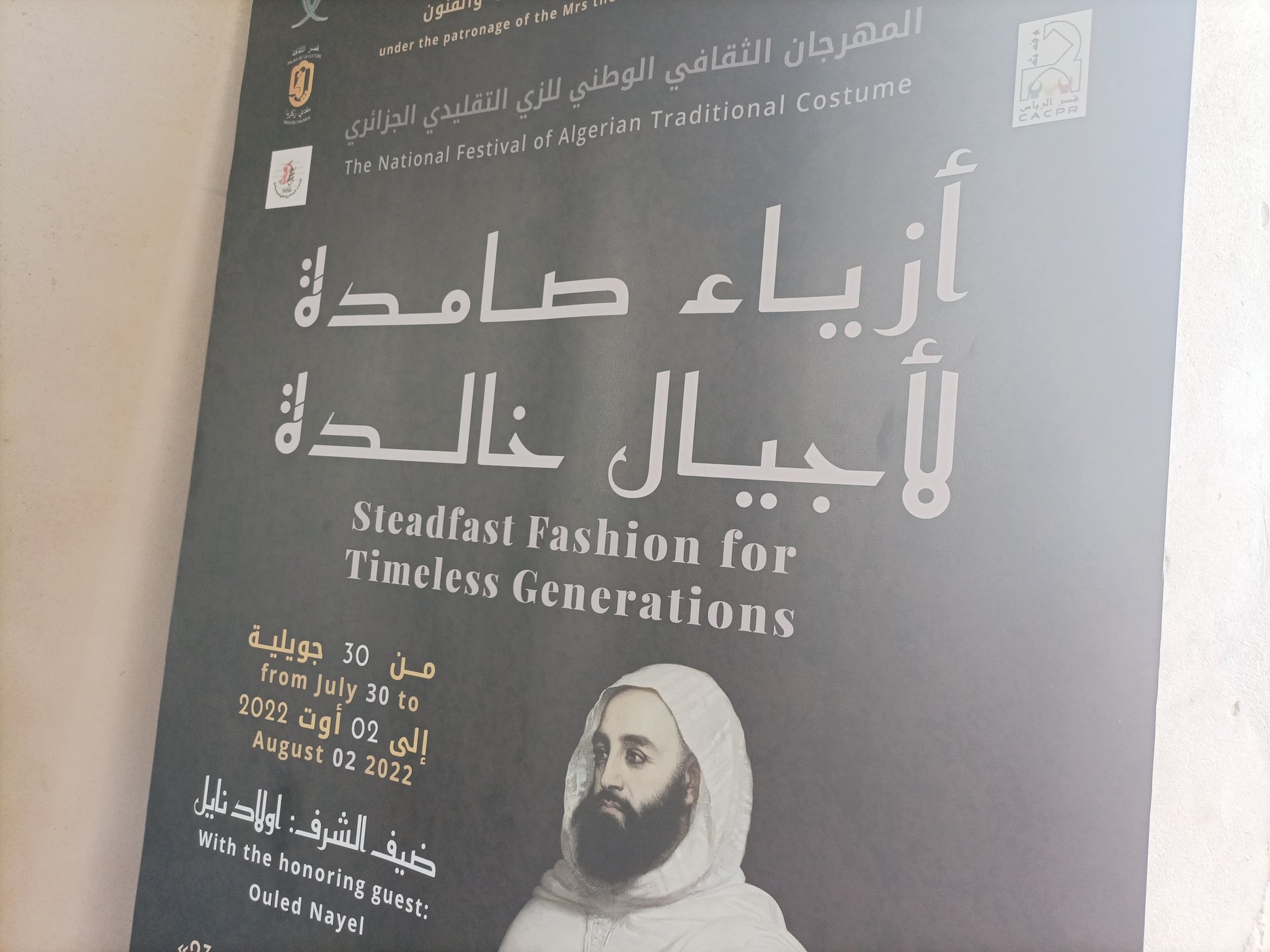 وحظى الزي التقليدي الرجالي الذي كان يرتديه الفرسان والثوار وزعماء الثورات والمقاومة الشعبية والثورة التحريرية كالبرنوس والقشابية الى جانب الملحفة النسائية باهتمام خاص باعتباره من الأزياء التقليدية التي لطالما ميزت التراث الجزائري عبر التاريخ وذلك في الجناح الاكاديمي “ازياء صامدة لاجيال خالدة” وهو بمثابة توثيق لمصادر مختلف أنواع اللباس التقليدي و الحلي ويضم رمزيا برنوس الأمير عبد القادر باللون الأحمر المطرز بالفضي وهو من مقتنيات متحف معسكر.