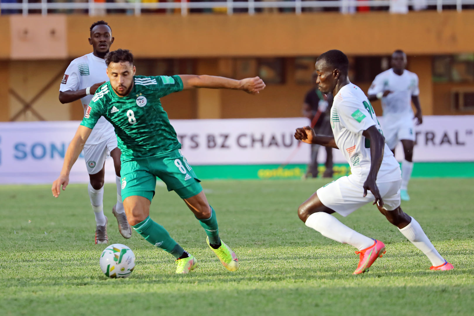 * الدقيقة 90+1: عمورة يضيع وجها لوجه ويفشل في تسجيل أول أهدافه مع “الخضر”.