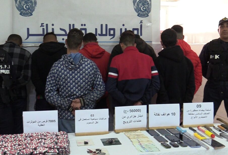 وتم توقيف 8 أشخاص مشتبه فيهم مسبوقين قضائيا، ينحدرون من ولاية الجزائر تتراوح أعمارهم ما بين 24 و44 عاما.
