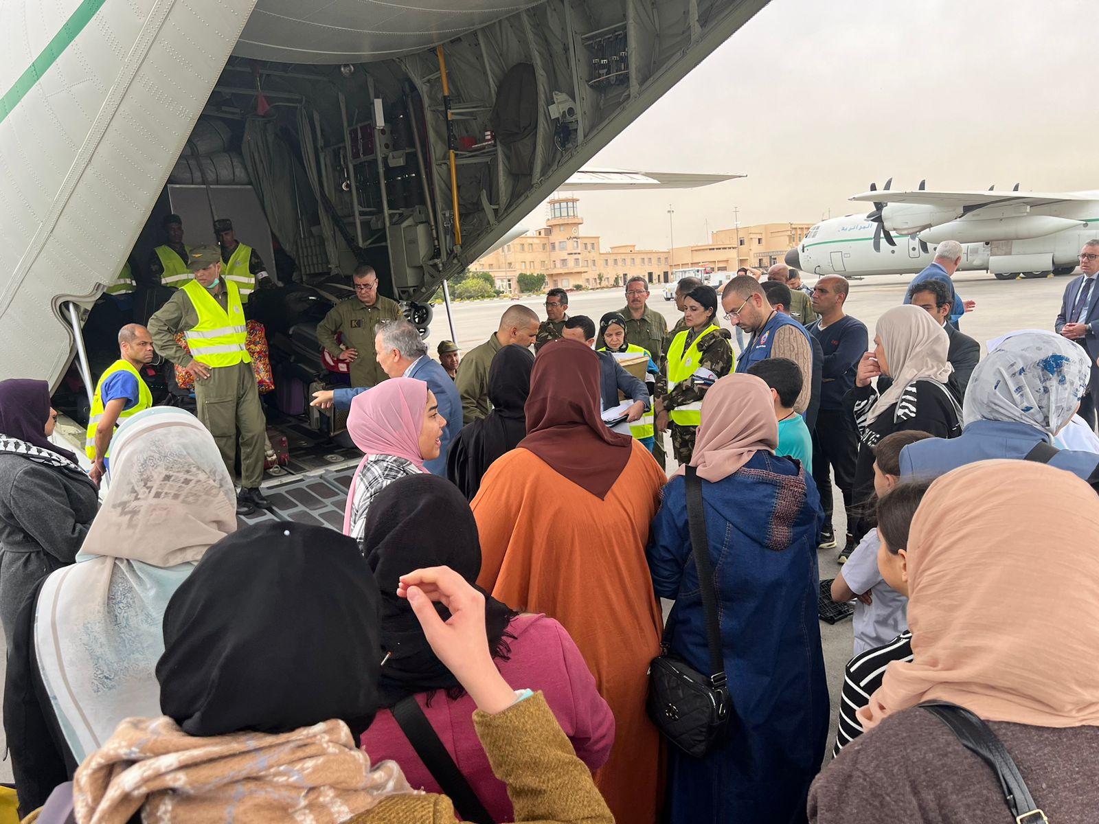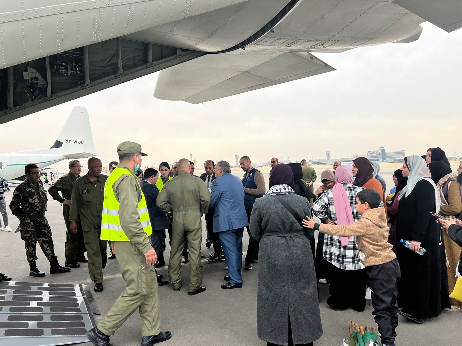 صور من عملية إجلاء 45 طفلا فلسطينيا و06 جزائريين جرحى إضافة إلى مرافقيهم على متن طائرتين مجهزتين طبيا تابعتين للقوات الجوية الجزائرية قادمتين من مطار القاهرة بمصر..