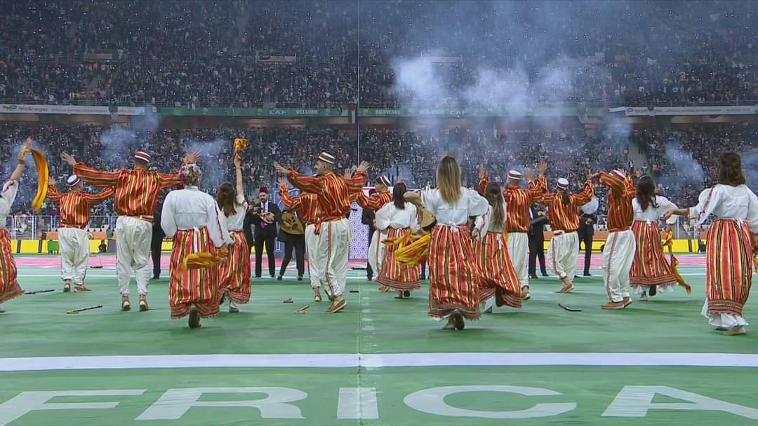 وتميز الحفل الفني باستعراض رقصات فلكلورية تمثل مناطق مختلفة من الوطن، إضافة إلى أداء النشيد الرسمي للبطولة من طرف مغنيين جزائريين وأفارقة وختمه الفنان الجزائري العالمي “سولكينغ” بأداء اثنين من أشهر أغانيه.