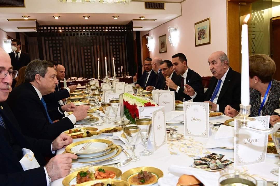 أقام رئيس الجمهورية عبد المجيد تبون يقيم مأدبة إفطار، على شرف ضيف الجزائر، ماريو دراغي، رئيس مجلس وزراء جمهورية إيطاليا، والوفد المرافق له.