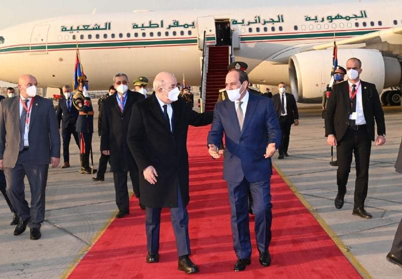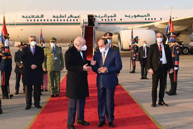رئيس جمهورية مصر العربية، السيد عبد الفتاح السيسي، يستقبل رئيس الجمهورية السيد عبد المجيد تبون بمطار القاهرة الدولي، قبل قليل.