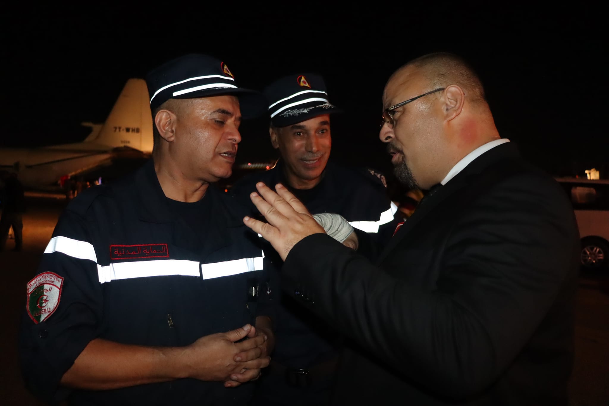 وحسب بيان الحماية المدنية، فإن فريق البحث والإنقاذ الجزائري تحت قيادة ضباط سامون من المديرية العامة للحماية المدنية، قائد الوحدة الوطنية للتدريب والتدخل، ورئيس فريق البحث في الأماكن الحضرية، بالإضافة ضباط مكلفين بنقطة التشغيل العملياتي.