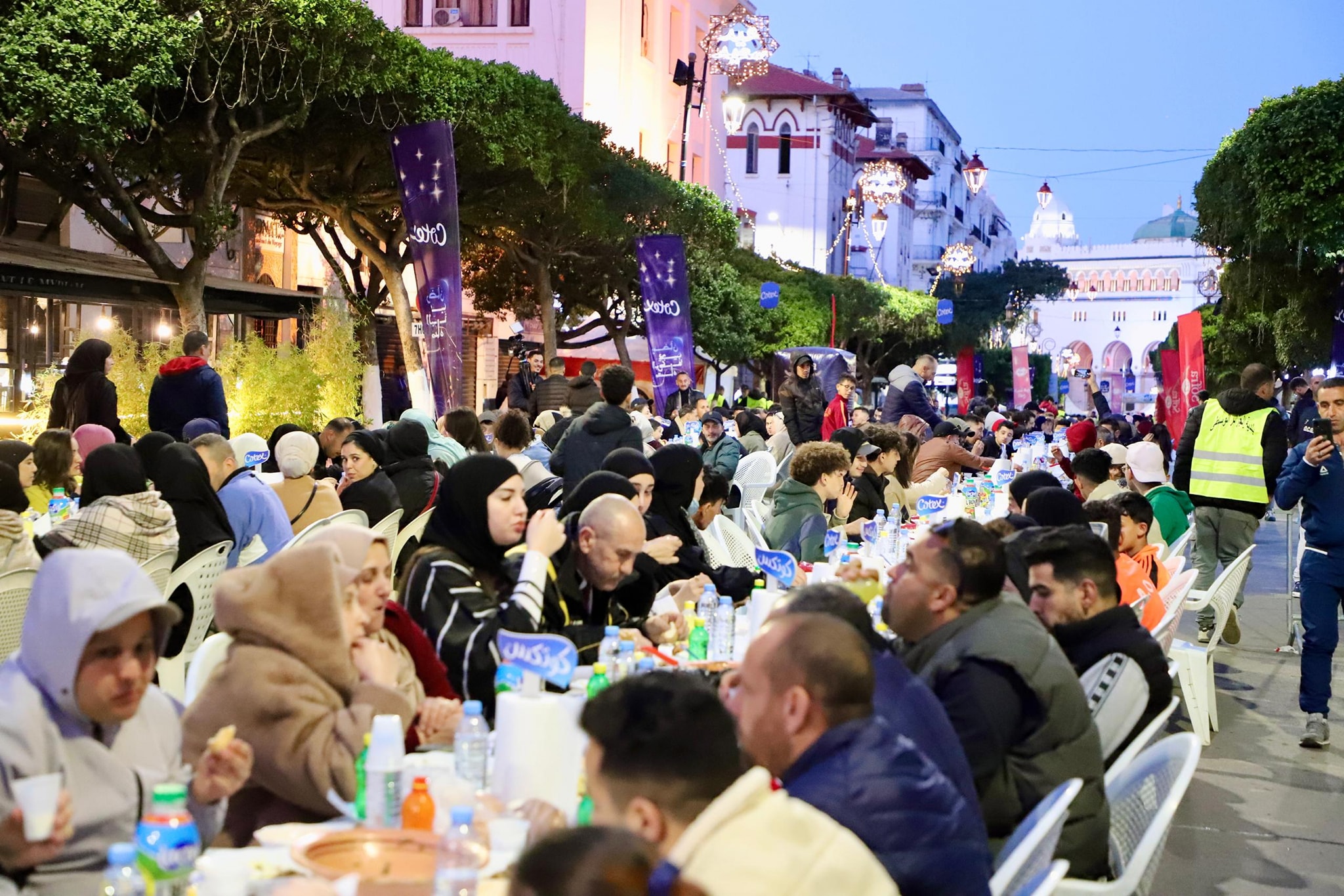 أنا الجزائر: شاهد أجواء تنظيم أطول مائدة إفطار صائم في قلب الجزائر العاصمة من ساحة أودان إلى البريد المركزي.