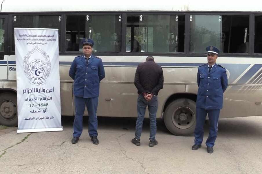 بالتنسيق مع النيابة المختصة إقليميا باشرت الضبطية القضائية التقصي والتحري حول هذا الفيديو ، وبإستخدام الوسائل التقنية المتاحة، تمكنت مصالح أمن ولاية الجزائر ممثلة في عناصرالأمن الحضري الخامس الكاليتوس لأمن المقاطعة الإدارية براقي من تحديد هوية سائق الحافلة وتوقيفه مع حجز حافلة نقل المسافرين التي كان يقودها.