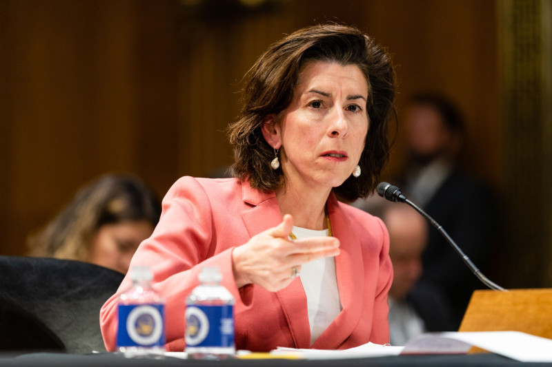 جينا ريموندو، وزيرة التجارة الأميركية تتحدث خلال جلسة استماع للجنة المخصصات التابعة لمجلس الشيوخ، واشنطن