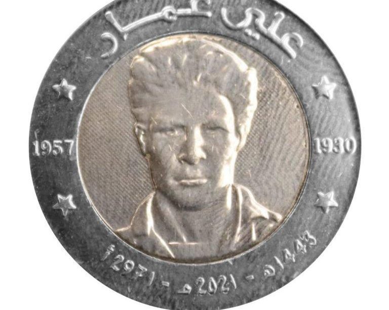 وحسب منشور فالصفحة الرسمية في التويتر لبنك الجزائر ، القطعة النقدية تحمل صورة الشهيد علي عمار المدعو علي لابوانت.