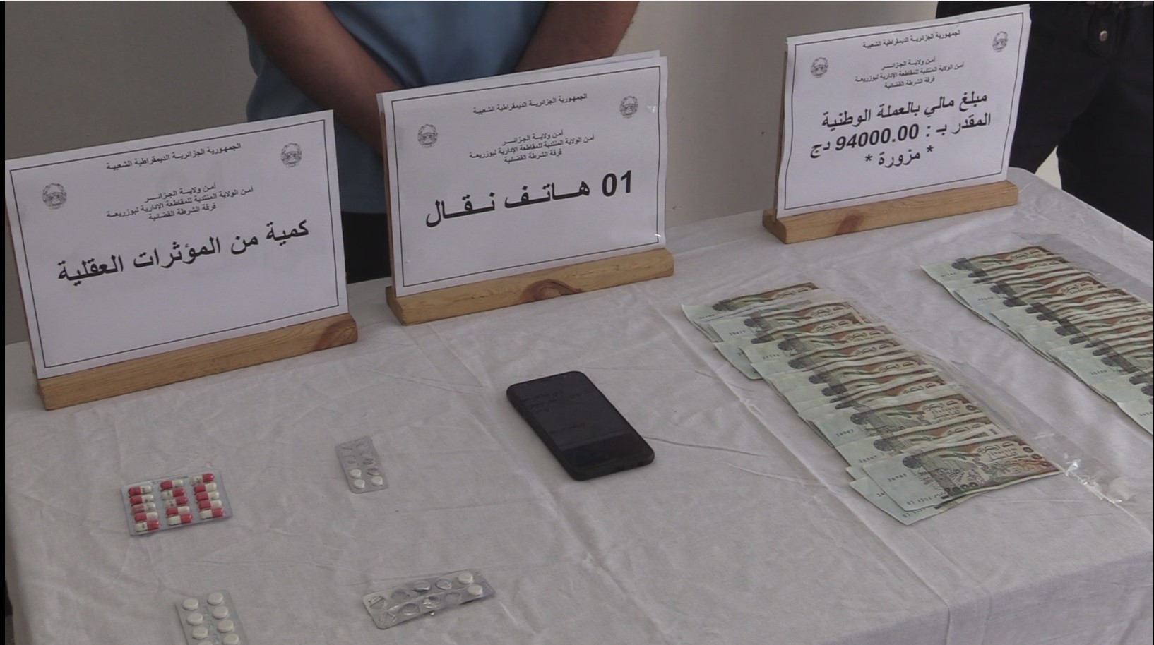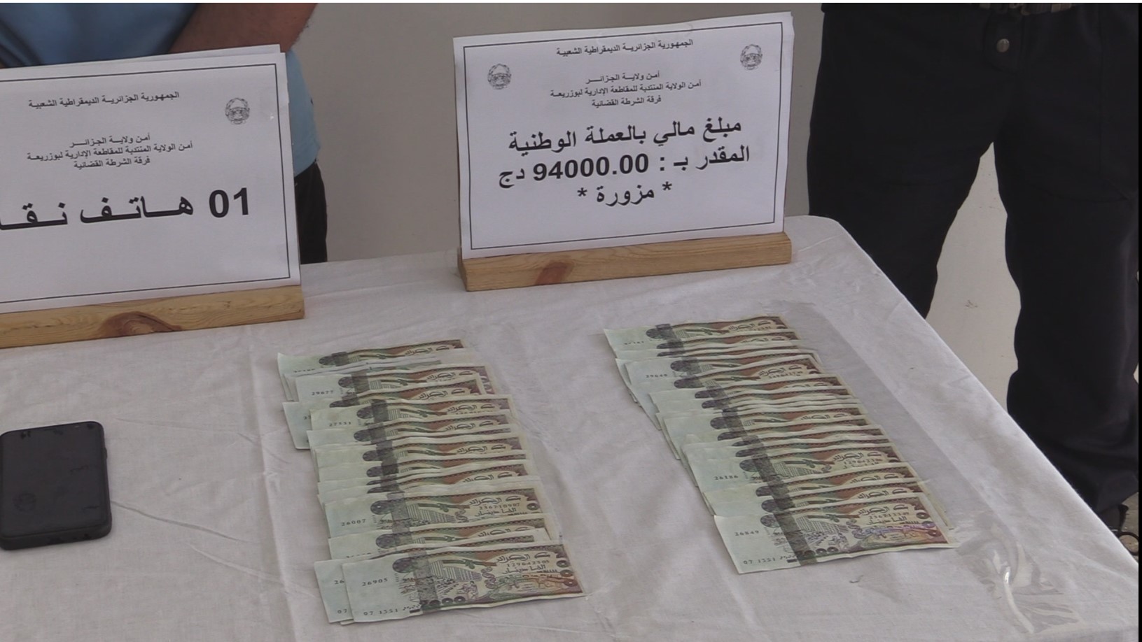 تحت الإشراف الدائم للنيابة المختصة إقليميا، تمكن خلالها عناصر الفرقة من توقيف المشتبه فيه الذي يبلغ من العمر 54 سنة، ينحذر من ولاية الجزائر، مسبوق قضائيا، وبعد عملية الملامسة القانونية تم ضبط بحوزته على مبلغ مالي في شكل أوراق نقدية مزورة بالعملة الوطنية من فئة (2000)دج تقدر قيمته بـ (9.4) مليون سنتيم، كمية من المؤثرات العقلية وهاتف نقال.