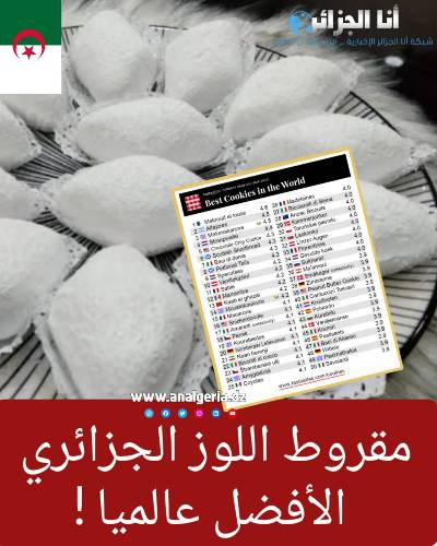تصدرت حلوى “مقروط اللوز” الجزائرية تصنيف أحسن 100 حلوى في العالم لسنة 2023، الذي يعده موقع “تاست أطلس” المتخصص.