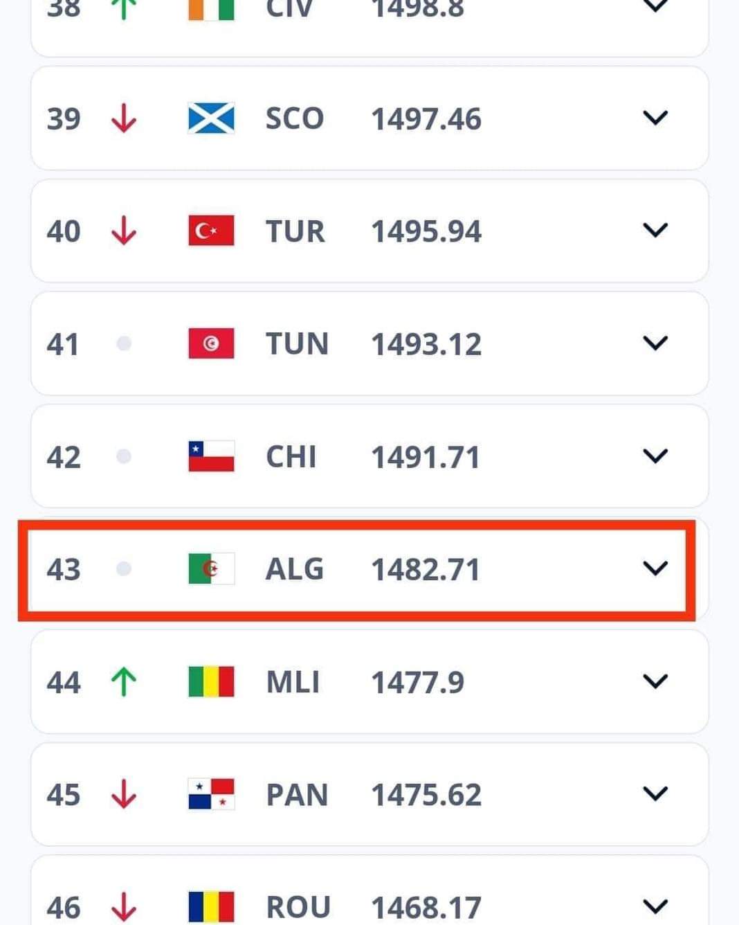 كما حافظ الخضر، أيضا على مركزهم على الصعيد الإفريقي، بتواجدهم في المركز السابع، بعد كل من منتخبات المغرب، السنغال، نيجيريا، مصر، كوت ديفوار وتونس.