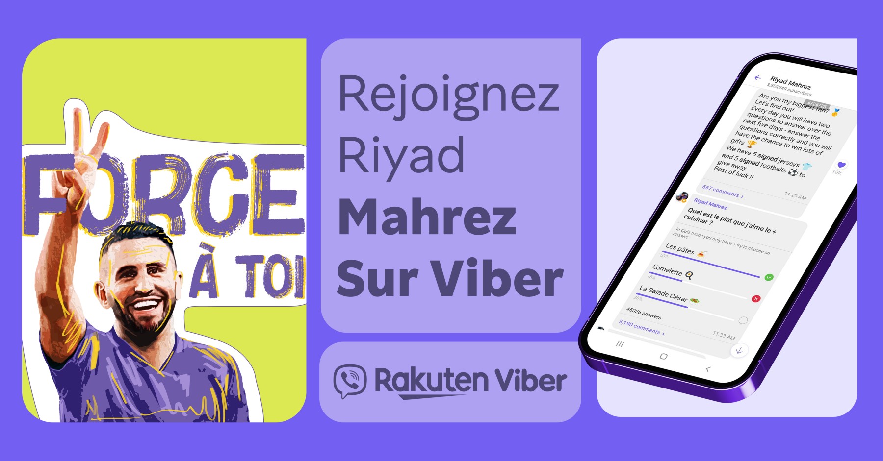 تطبيق فايبر يتيح لك فرصة إرسال سؤالك لرياض محرز واربح قميصا موقعا منه