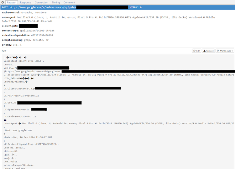 خلال فحص هاتف من طراز Pixel 9 pro XL (لم يتم استعماله سابقاً) من Google، وباستخدام الإعدادات الافتراضية لحساب Google، كشف فريق البحث في مجلة Cybernews عن وجود تدفق سري للبيانات تنشط من خلاله عملية تبادل بيانات مستمرة ما بين الهاتف الجديد وخوادم Google. وقد لوحظ أيضاً أن الهاتف يحاول بين الفينة والأخرى تحميل وتنفيذ أكواد برمجية متجددة، فيما يبدو وأنه باب خلفي يمكن أن يعرض الجهاز لأخطار أمنية جمة.