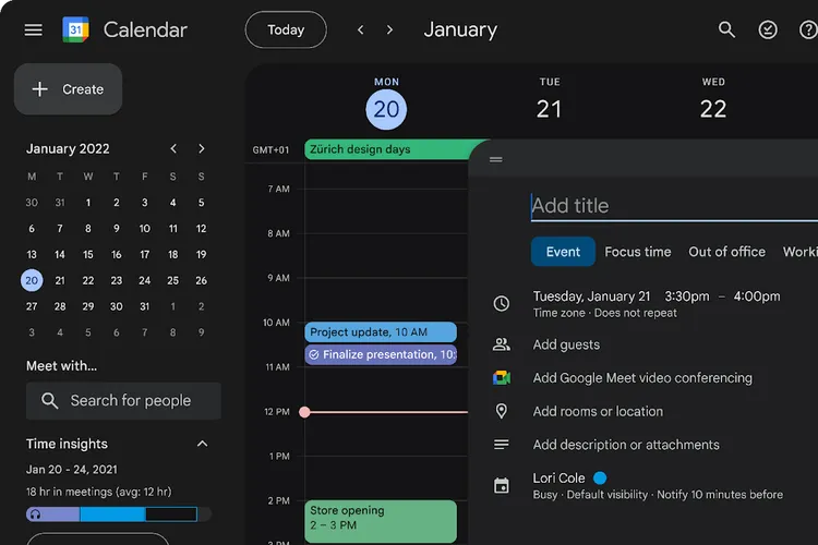 تقويم غوغل على الويب يحصل على واجهة جديدة والوضع المظلم