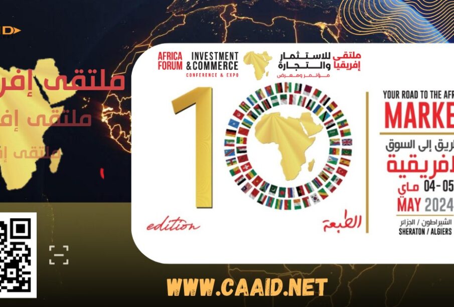 ينظم المركز العربي الإفريقي للاستثمار والتطوير ”CAAID ” الطبعة 10 لملتقى إفريقيا للاستثمار والتجارة تحت شعار الطريق إلى السوق الإفريقية يومي الـ 04 و05 ماي 2024 بفندق الشيراطون بالجزائر العاصمة.