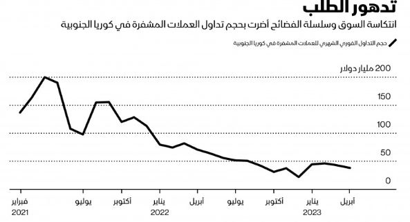 تقلّص حجم التداول الشهري للعملات المشفرة في كوريا الجنوبية إلى نحو 38 مليار دولار في أبريل