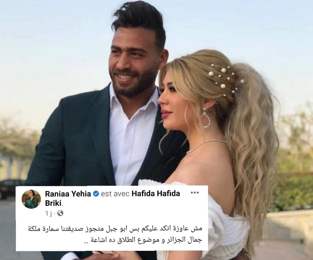 واليوم خرجت صديقة مقربة من العروسين وحسمت الجدل وتنفي شائعات طلاق أبو جبل وزوجته الجزائرية يحسى سمارة.