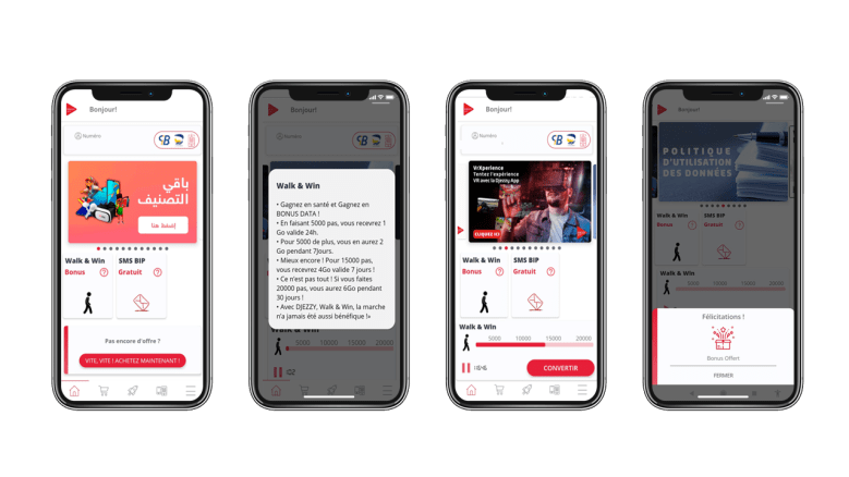 حيث أنـه عند مشي 5000 خطوة، سيحصل الزبون على 1 جيغا بايت صالحة لمدة 24 ساعة، وعندما يمضي 10000 خطوة  سيستفيد من 2 جيغا بايت صالحة لمدة 7 أيام، ومقابل 15000 خطوة، في حين سيستفيد من 4 جيغا بايت صالحة لمدة 7 أيام بينما يستفيد من 6 جيغا بايت صالحة لـمدة 30 يومًا إذا قطع أكثر من 20000 خطوة.