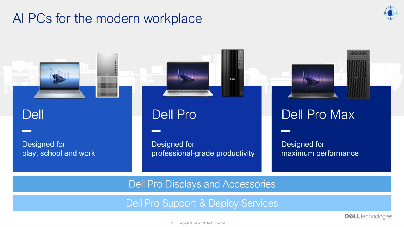 وقدمت دِل ثلاث فئات بسيطة للمنتجات الجديدة لتسهل على العملاء اختيار ما يناسبهم استناداً إلى الاحتياجات الأساسية لأعمالهم: