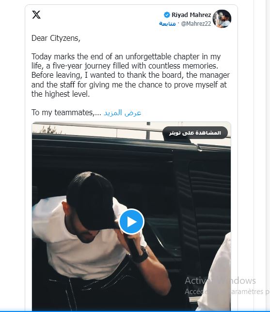 وكتب محرز في تغريدة على منصة تويتر X : “اليوم تنتهي رحلة مدتها خمس سنوات مليئة بذكريات لا حصر لها. قبل مغادرتي أردت أن أشكر مجلس الإدارة والمدير لإعطائي الفرصة لإثبات نفسي على أعلى مستوى.”