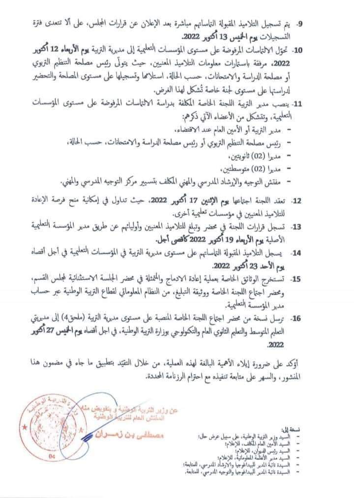 كشفت وزارة التربية الوطنية عن شروط إعادة إدماج التلاميذ المطرودين، موضحة أن القانون يكفل حق التعليم للأطفال حتى بلوغ سن 16 وبالنسبة لذوي الاحتياجات الخاصة لسن 18 سنة.