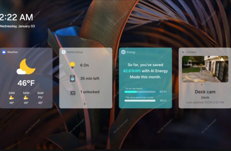 ويمكن أيضًا عرض موجز كاميرات المنزل ودرجة الحرارة والوقت المتبقي في دورة الغسيل، وذلك في حالة وجود الأجهزة المتوافقة.