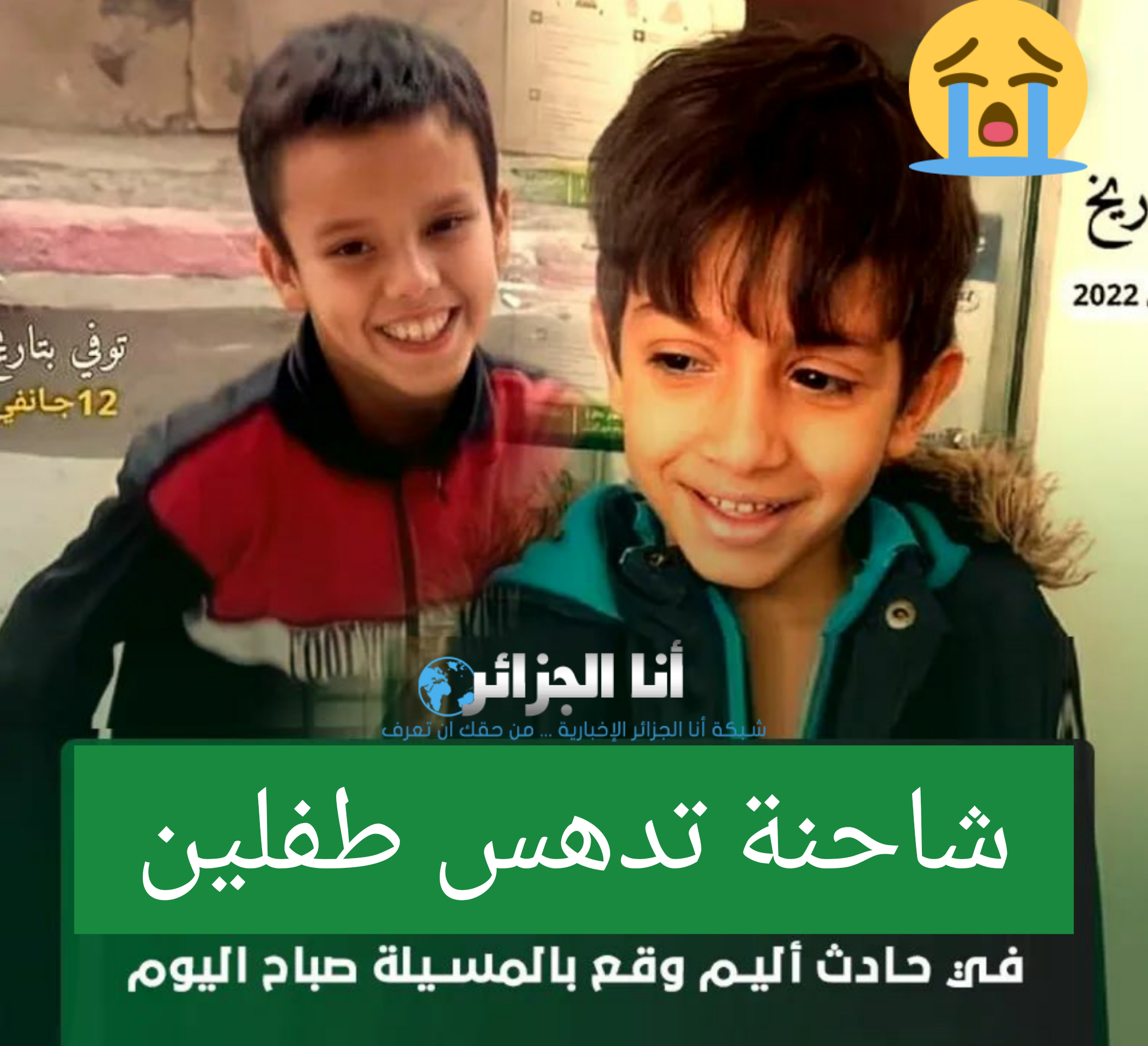 المسيلة تستيقظ على وقع فاجعة أليمة بوفاة الطفلين “سالمي معتز بالله بن رضوان” و “بديرة فادي أيوب بن الزوبير” في حادث مرور أليم؛ حيث قامت شاحنة بدهسهما.