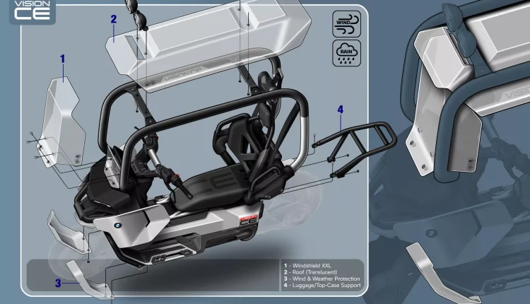 يستمد Vision CE الكثير من لغته التصميمية من سكوتر BMW C1 الذي ظهر عام 2000 وكان مزوداً بهيكل مغلق يجمع بين سهولة السكوتر وأمان السيارة، لكنه فشل تجارياً وتوقف إنتاجه في 2002. ومنذ ذلك الحين أطلقت الشركة عدة سكوترات كهربائية ناجحة مثل CE 02 وCE 04، اللذين بدآ كنماذج مستقبلية قبل إطلاقهما كمنتجات حقيقية.