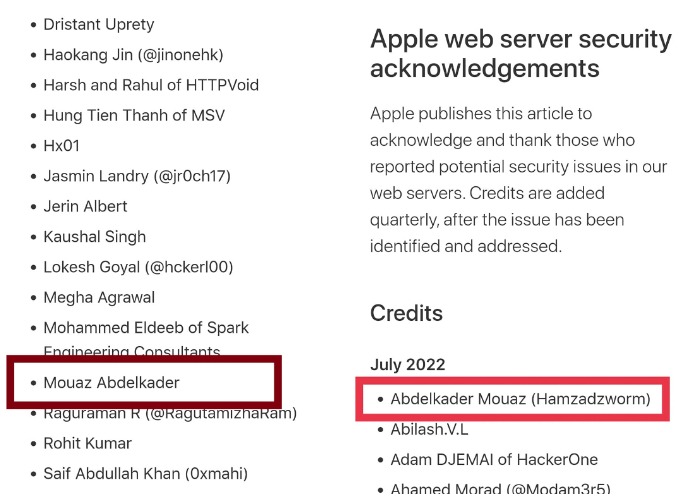 نجح الشاب الجزائري عبد القادر مُعِز في اكتشاف ثغرة أمنية في أجهزة آبل، جعلت الشركة العالمية تضيف اسمه في حائط الشرف الخاص بها.