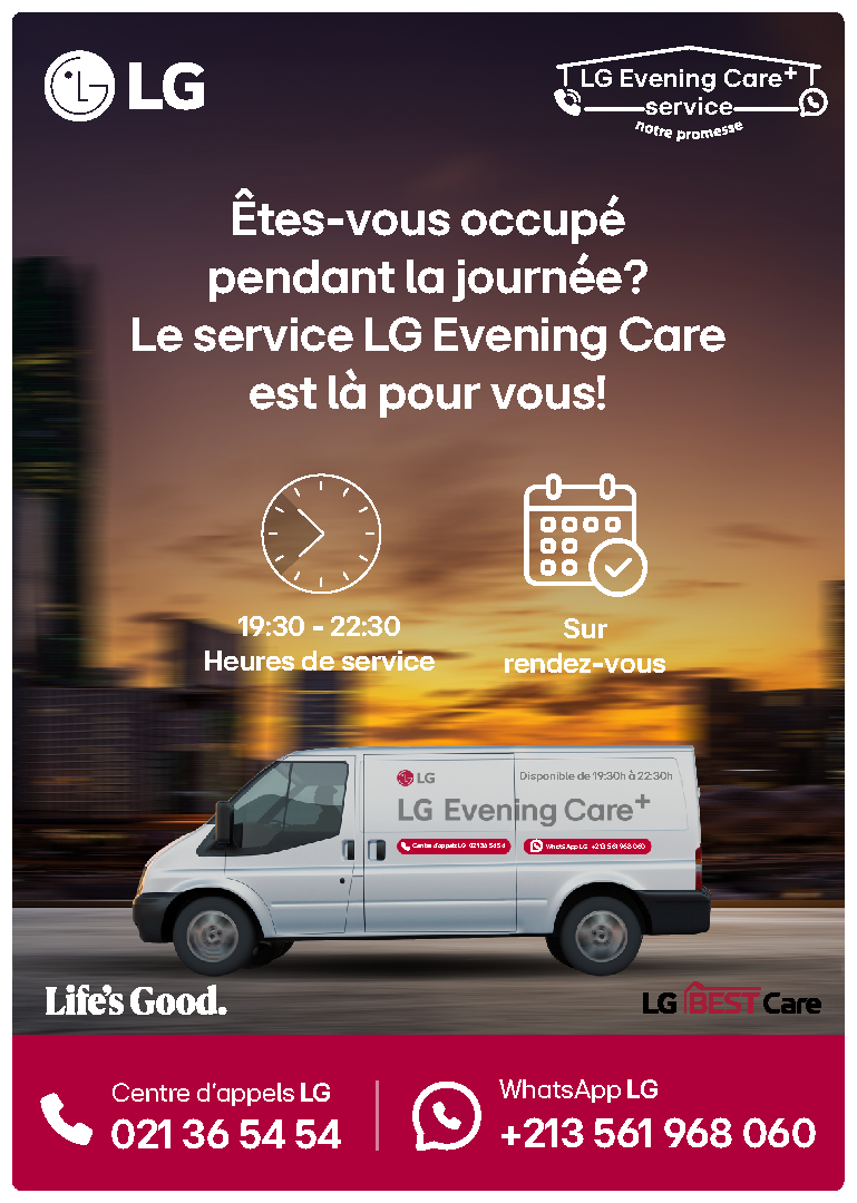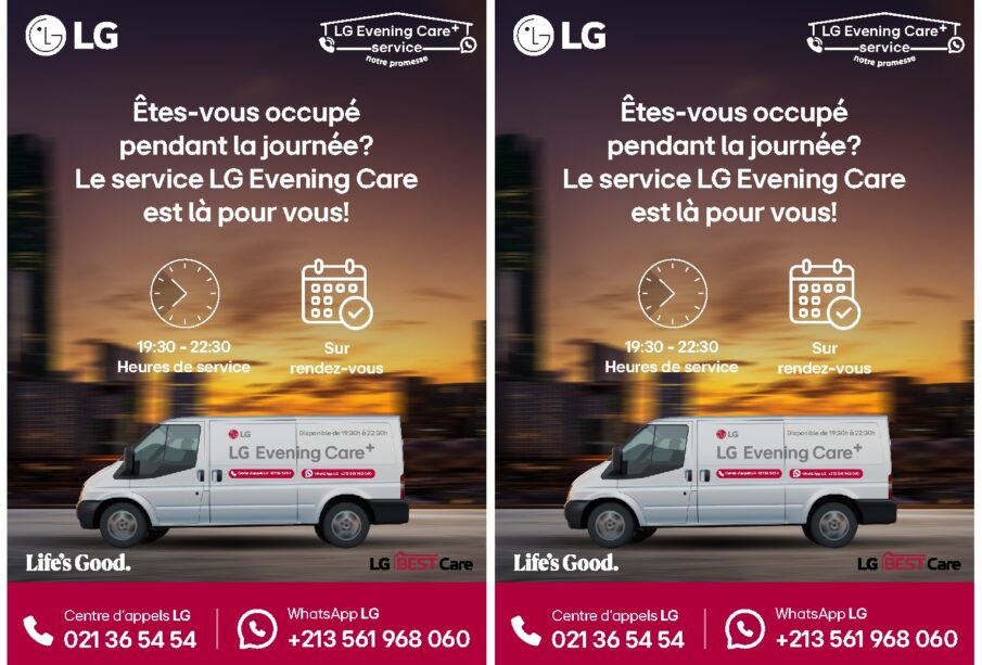 خدمة “+LG Evening Care” تتوفر حاليًا حصريًا في الجزائر العاصمة، ومن المقرر إطلاقها تدريجيًا في ولايات أخرى لتوسيع نطاق الوصول إلى هذه الخدمة المبتكرة. وتعمل شركة “إل جي” بشكل فعال على توفير هذه المرونة لعدد أكبر من العملاء في جميع أنحاء الوطن.