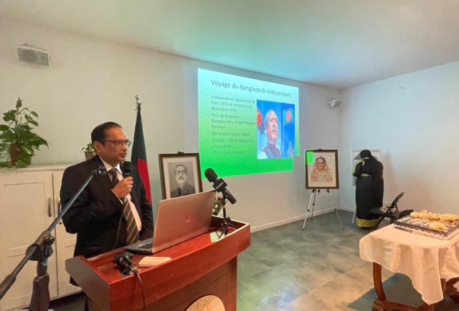 وكجزء من الاحتفال الذي نظمته السقارة الجمعة الماضية، قدم السفير مذكرة رئيسية حول التطورات المعاصرة والتجارة والفرص الهامة في بنغلاديش.