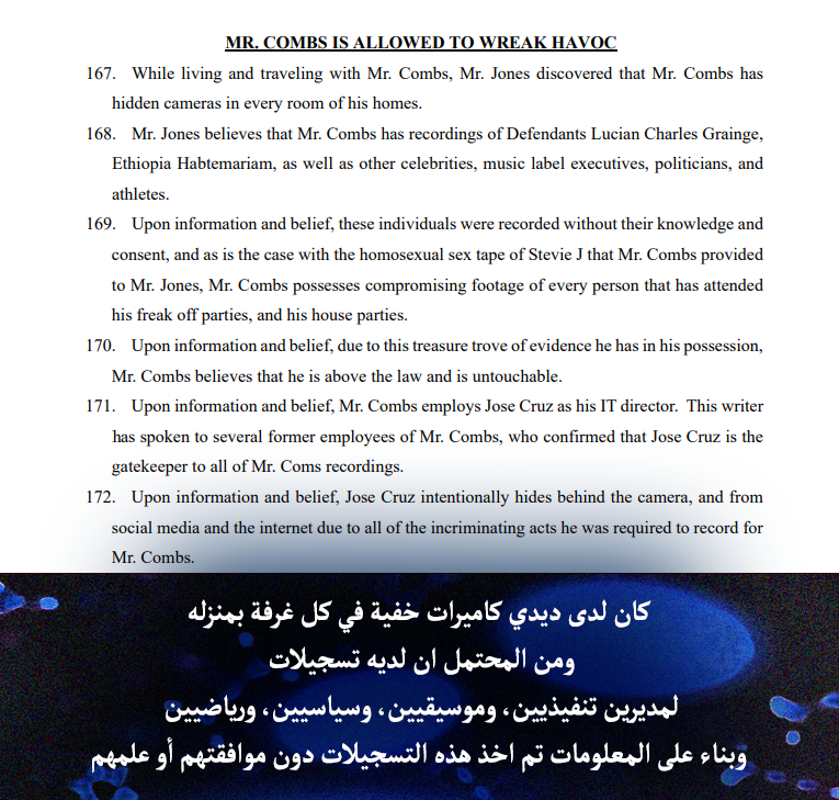 لكن التهمة الأبرز هي أن منزله كان مُجهزًا بكاميرات مراقبة، كانت تسجل كل شيء بهدف جمع محتويات تُستخدم لاحقًا لابتزاز الضحايا، ويُعتقد أن بينهم مشاهير وشخصيات هامة